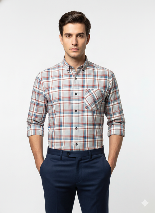 Men’s Premium Cotton Checks Shirt | Teal & Beige Checks